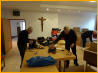 Eine Woche nach dem Kohlessen wurde die Schuhsammelaktion unter dem Motto "Mein Schuh tut gut" vom internationalen Kolpingwerk durchgeführt. Noch tragfähige Schuhe konnten beim Pfarrheim abgegeben werden, die dort von Kolpingmitgliedern verpackt wurden. Organisiert wurde die Aktion von Günter Mucks. Die Schuhe hatte die Männergruppe angenommen, zusammen gebunden, gezählt und verpackt. Dafür herzlichen Dank! 2025 wurden 528 Paar Schuhe in 27 Paketen verpackt. Nun, da sollte man meinen, die Visbeker haben größtenteils ihre Schuhe aussortiert .... Weit gefehlt! Diesmal kamen 1168 Paar Schuhe in 64 Paketen zusammen! Allen Spendern sei an dieser Stelle gedankt! Die gesammelten Schuhe werden wieder zur Kolping Recycling GmbH verschickt.