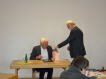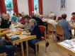 Nachdem alle ihren Platz in dem großen Saal des Gasthauses Rüsch gefunden hatten, konnte das Mittagessen aufgetragen werden. Der Renner unter den drei zur Auswahl stehenden Gerichten, war natürlich der Fischteller "Meerjungfrau" in Butter gebratenes Lachs-, Rotbarsch- und Limandesfilet bunt garniert, dazu bunter Salatteller und Salzkartoffeln. Die Portionen waren großzügig bemessen und wie mir (Heinz Thie) später versichert wurde, hat es allen sehr gut geschmeckt.